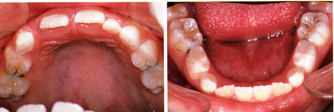4歳時、主訴の反対咬合は改善したものの、乳臼歯の咬合面にう蝕ができ始めました。